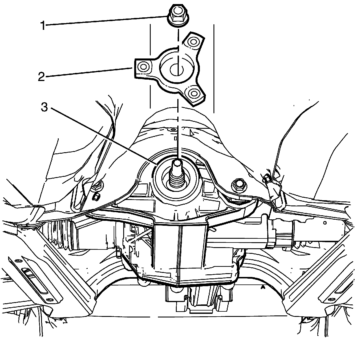 4. Install the NEW prevailing torque pinion flange retaining nut (1) to the differential (3).