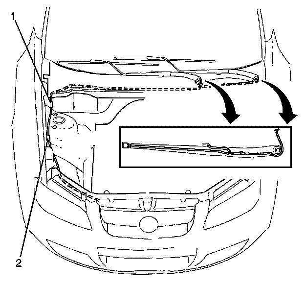 1. Remove the wiper arms. Refer to Windshield Wiper Arm Replacement (Service and Repair).
