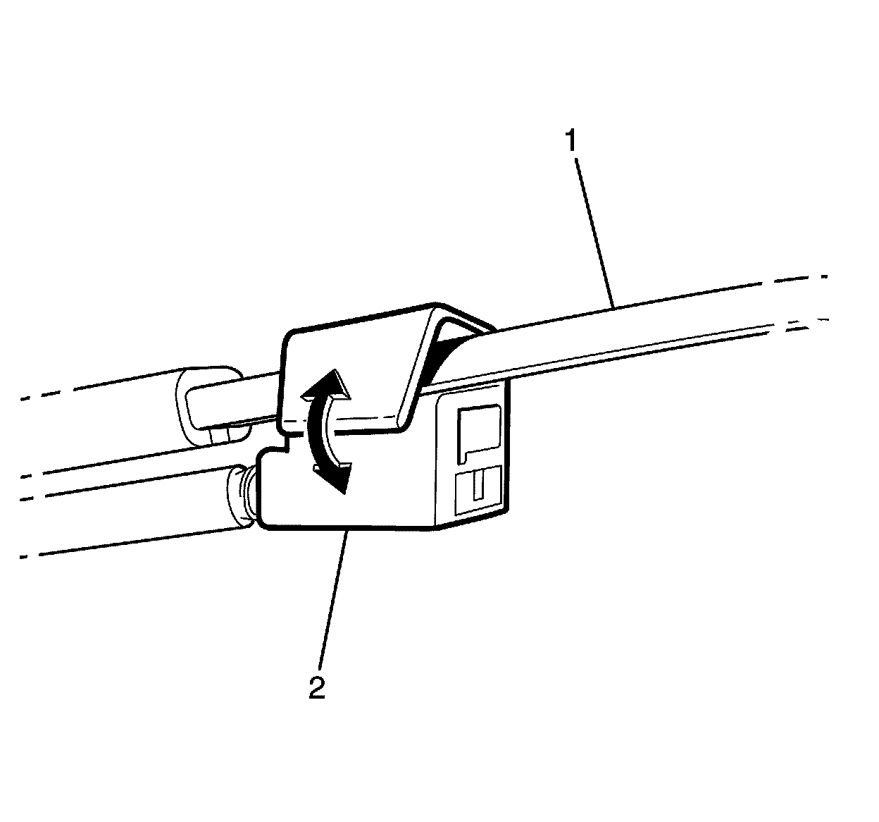 1. Unclip the washer nozzle (2) from the wiper arm (1).