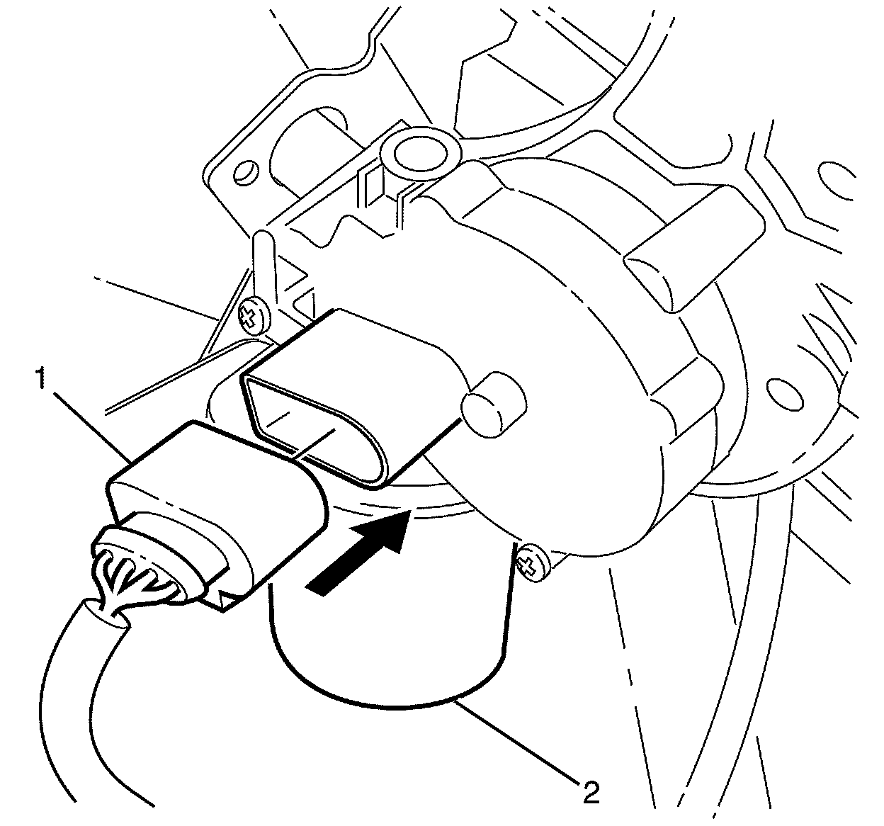3. Disconnect the electrical connector (1) from the wiper motor (2).