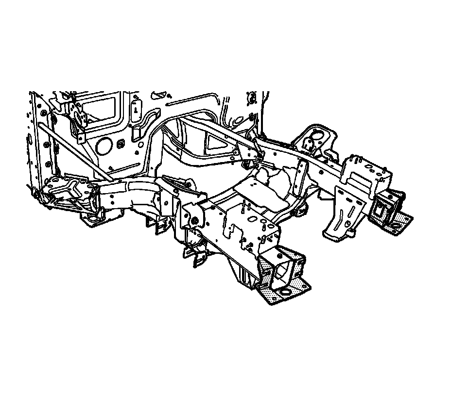 6. Locate and remove all factory welds attaching the front bumper bracket to the frame rail. Note the number and location of the welds for installation of the new bracket.
