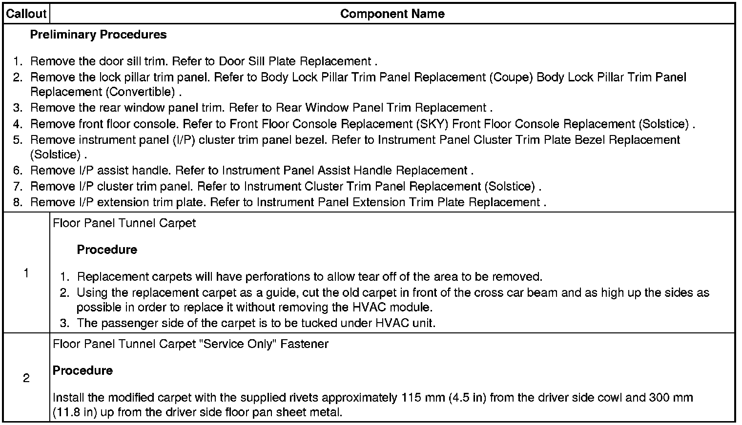 Floor Panel Tunnel Carpet Replacement