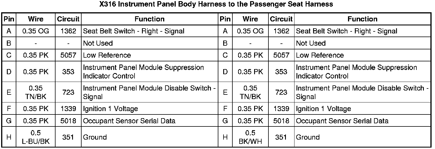 X316 Instrument Panel Body Harness to the Passenger Seat Harness
