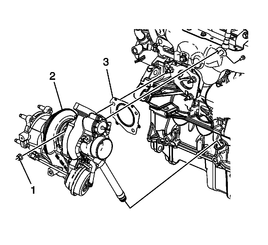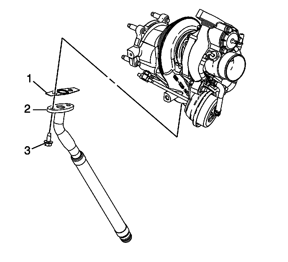 3. Install the turbocharger oil return pipe bolts (3) and tighten to 10 Nm (89 lb in).