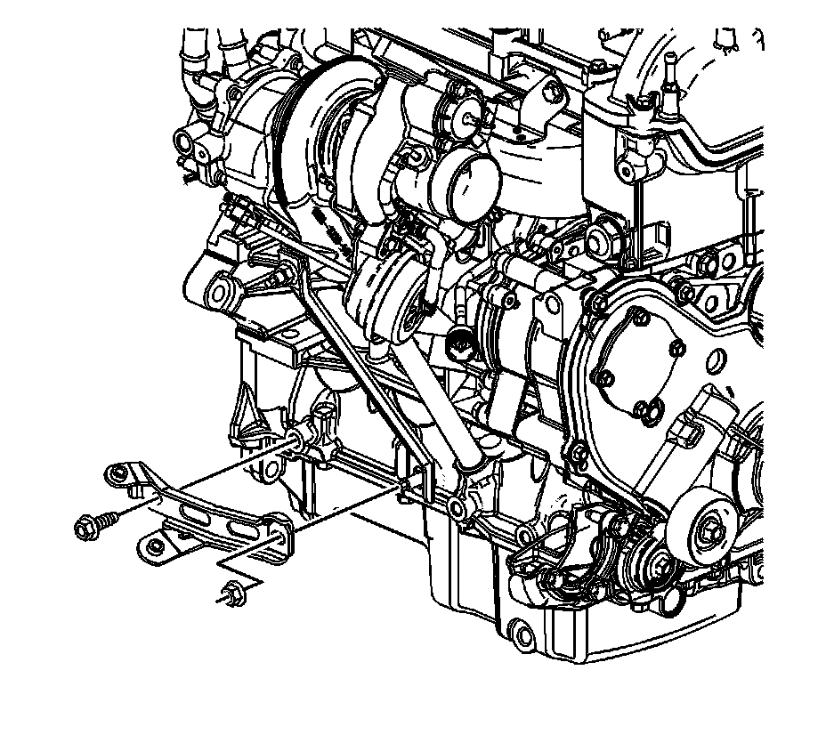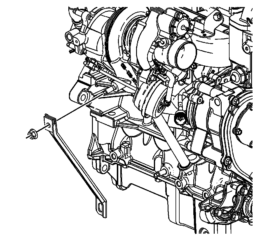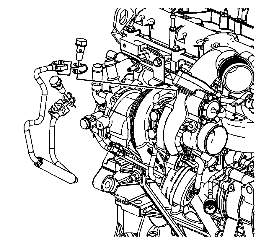 Caution: Do not twist the turbocharger oil feed pipe. Twisting of the feed pipe will result in the collapse and deformation of the plastic pipe, restricting oil flow and causing turbocharger damage. During turbocharger replacement, gently push the oil feed pipe towards the front of the engine to clear the turbocharger. Assistance may be required to keep the pipes clear of the turbocharger during removal or installation.
