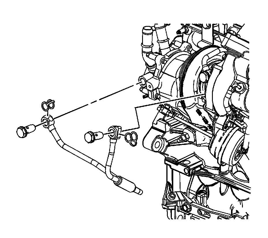 Note: The engine block end of the oil feed pipe fitting has an anti-rotation feature. Ensure that the fitting is fully seated against the block when installing the bolt.