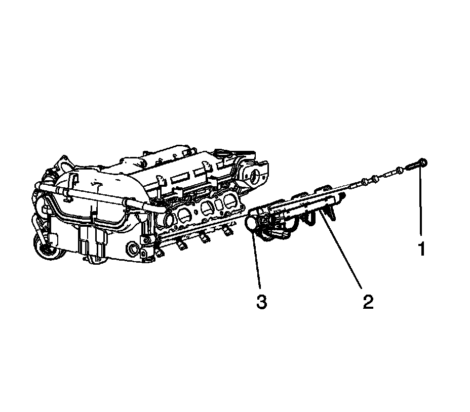 3. Place the fuel rail (2) into position.