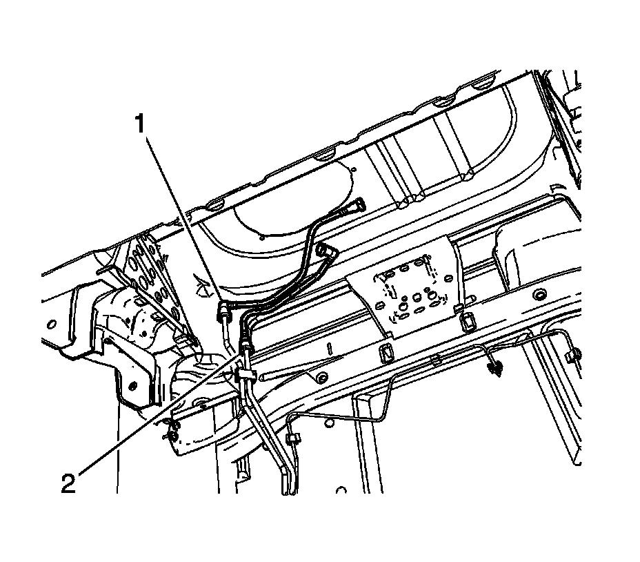 2. Connect the fuel pump fuel feed line quick connect fitting (2) to the chassis line. Refer to Plastic Collar Quick Connect Fitting Service (Plastic Collar Quick Connect Fitting Service).