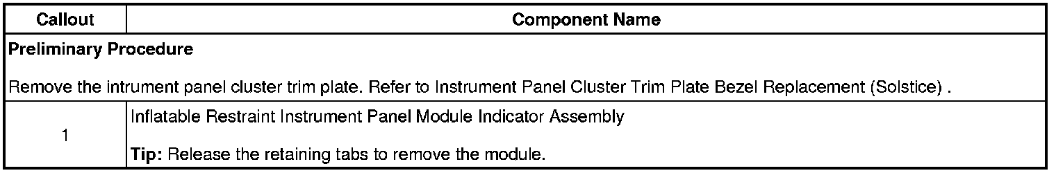 Inflatable Restraint Instrument Panel Module Indicator Replacement (Solstice)