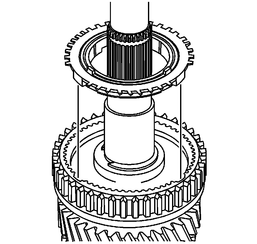 16. Using a hydraulic press, press the 1st/2nd synchronizer assembly onto the output shaft.