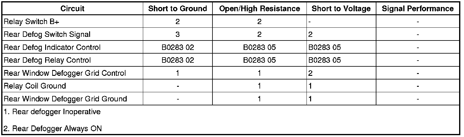 - Electric Rear Defrost Circuit Short to Battery or Open
