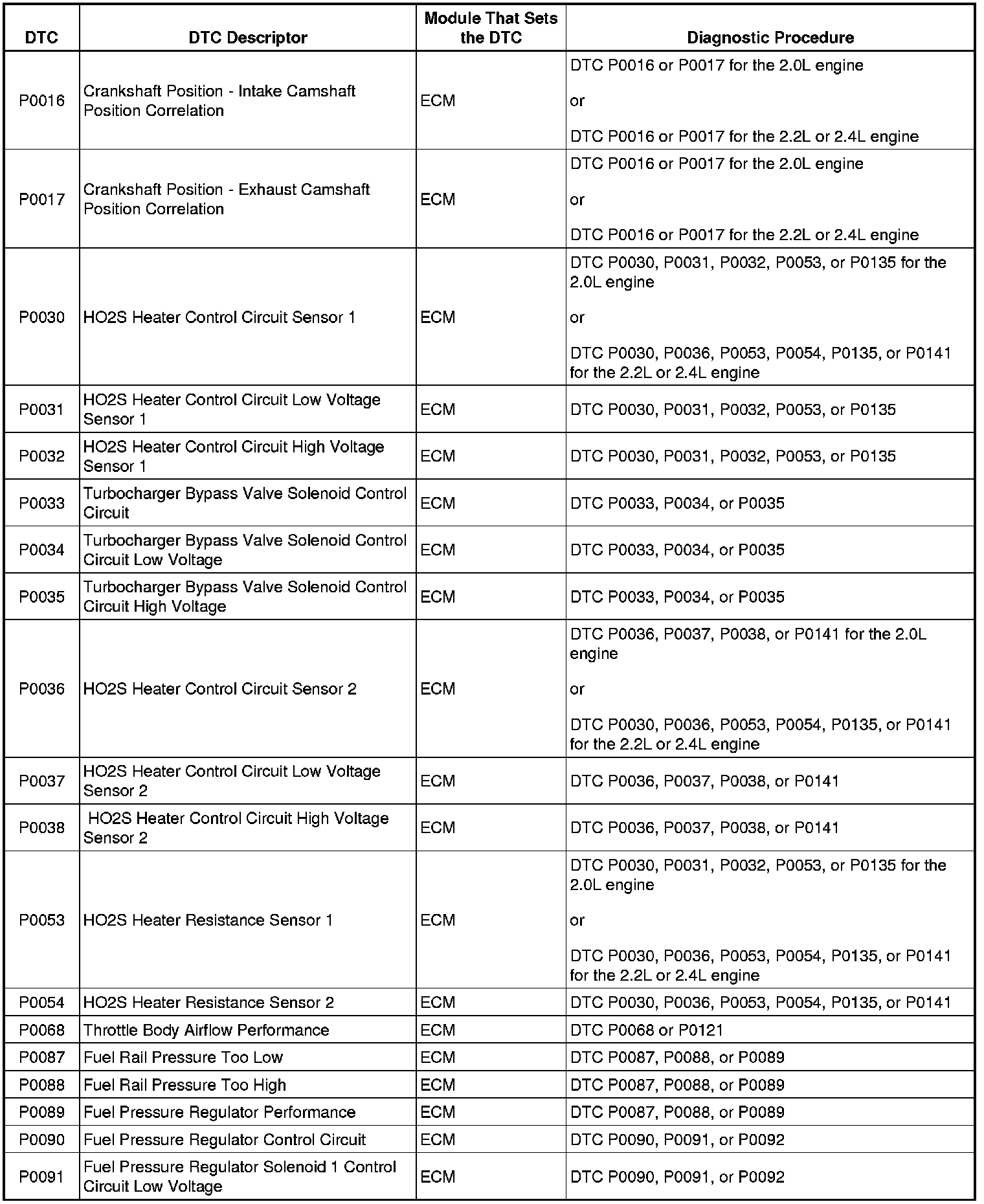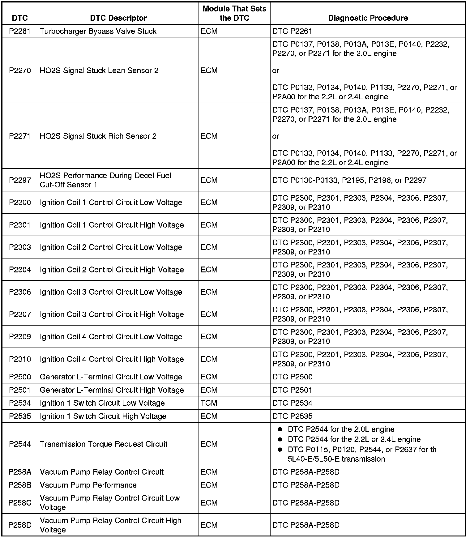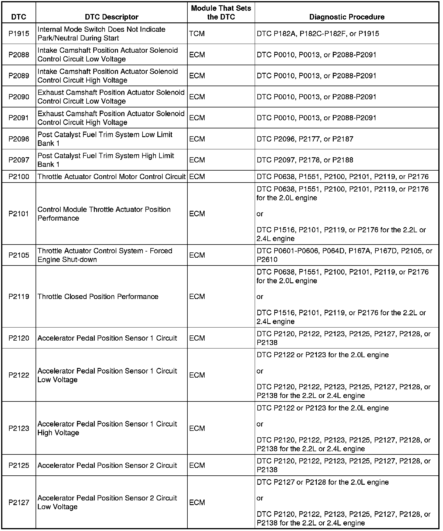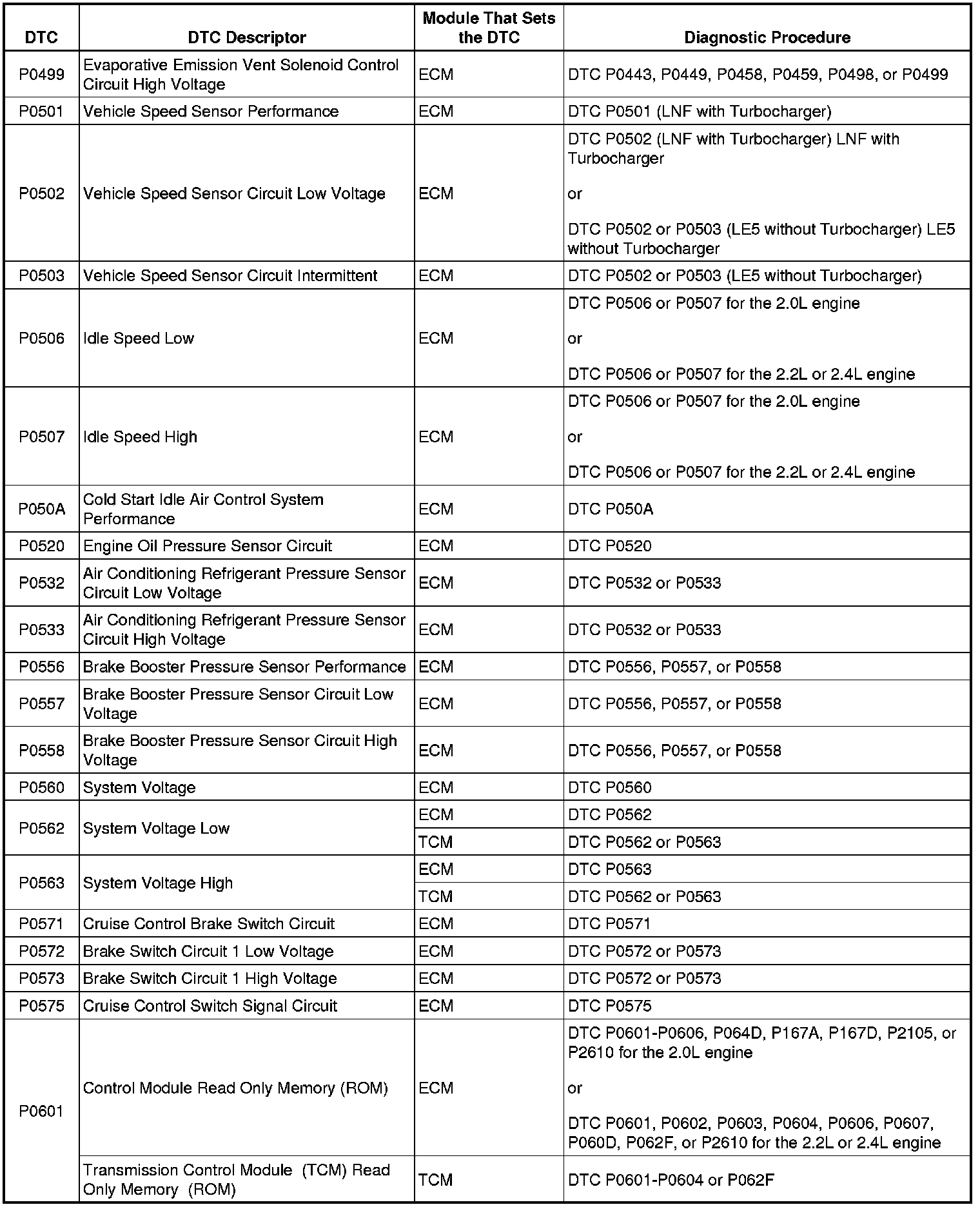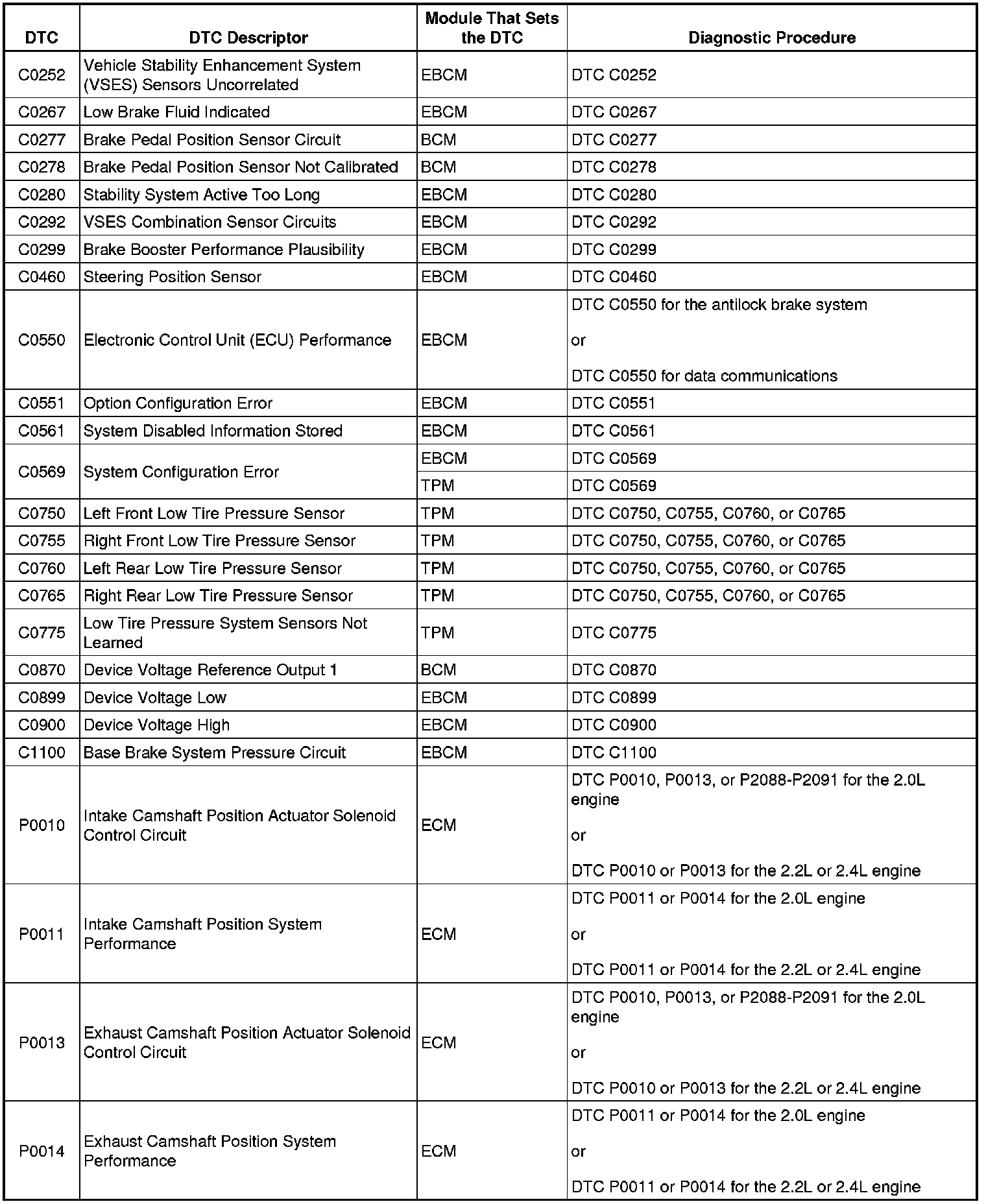 Diagnostic Trouble Code (DTC) List - VehicleThis master DTC list includes all applicable DTCs in alphanumeric order with descriptors.