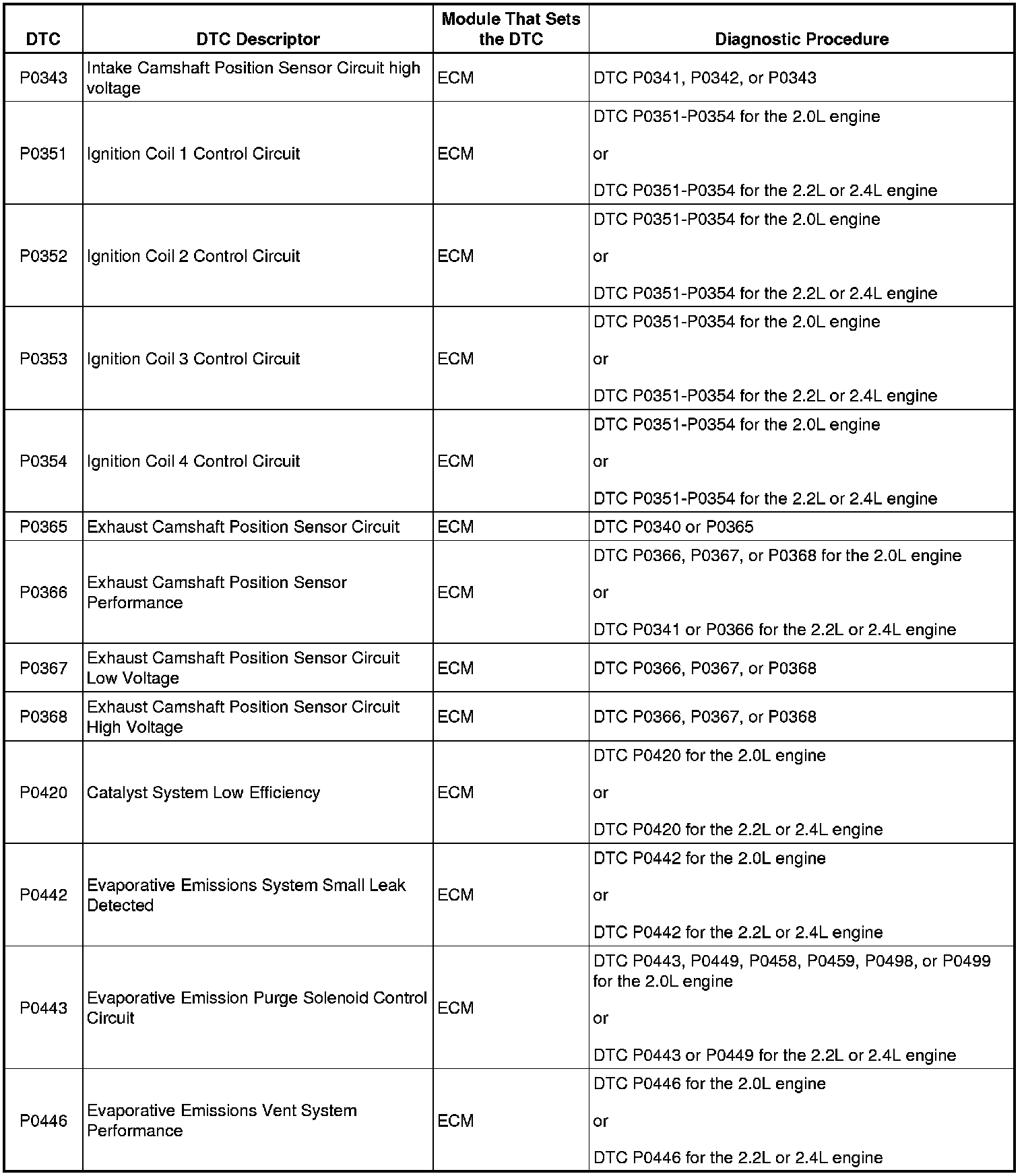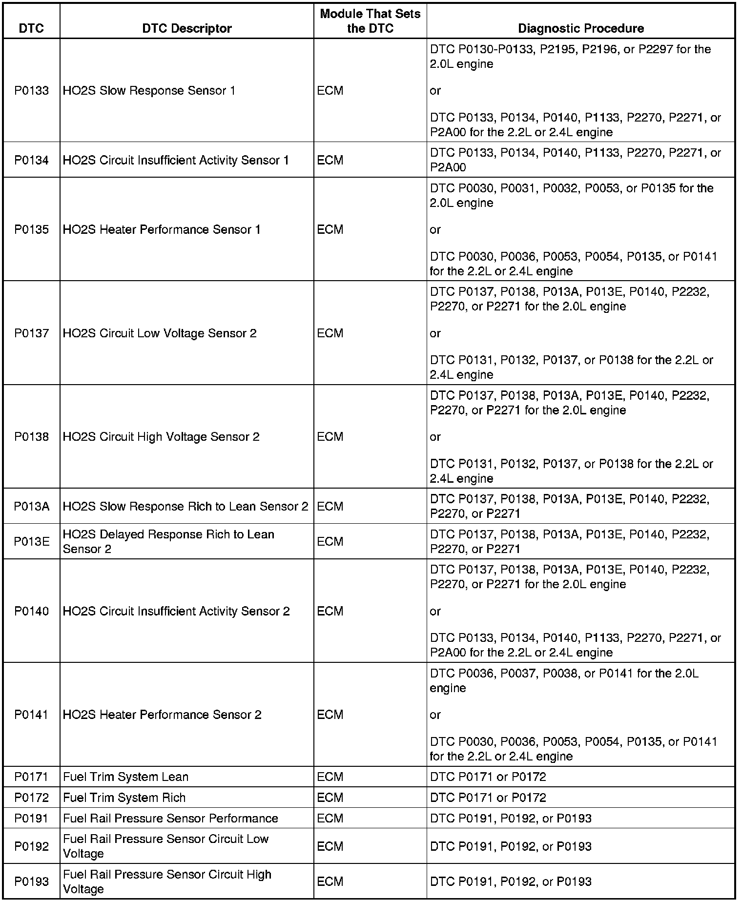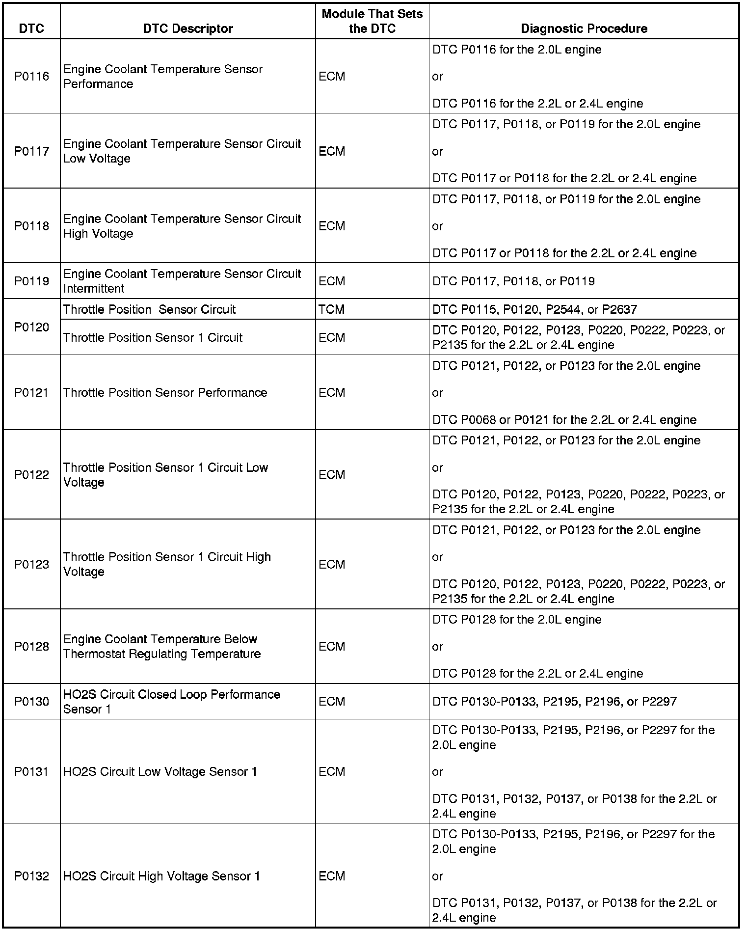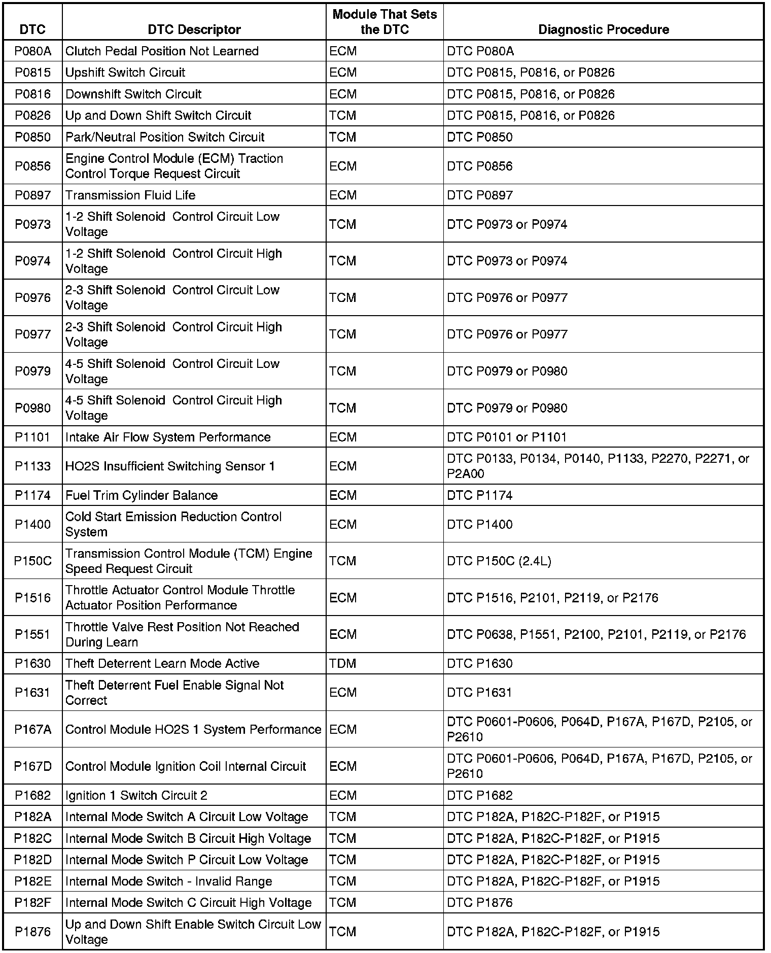Diagnostic Trouble Code (DTC) List - VehicleThis master DTC list includes all applicable DTCs in alphanumeric order with descriptors.