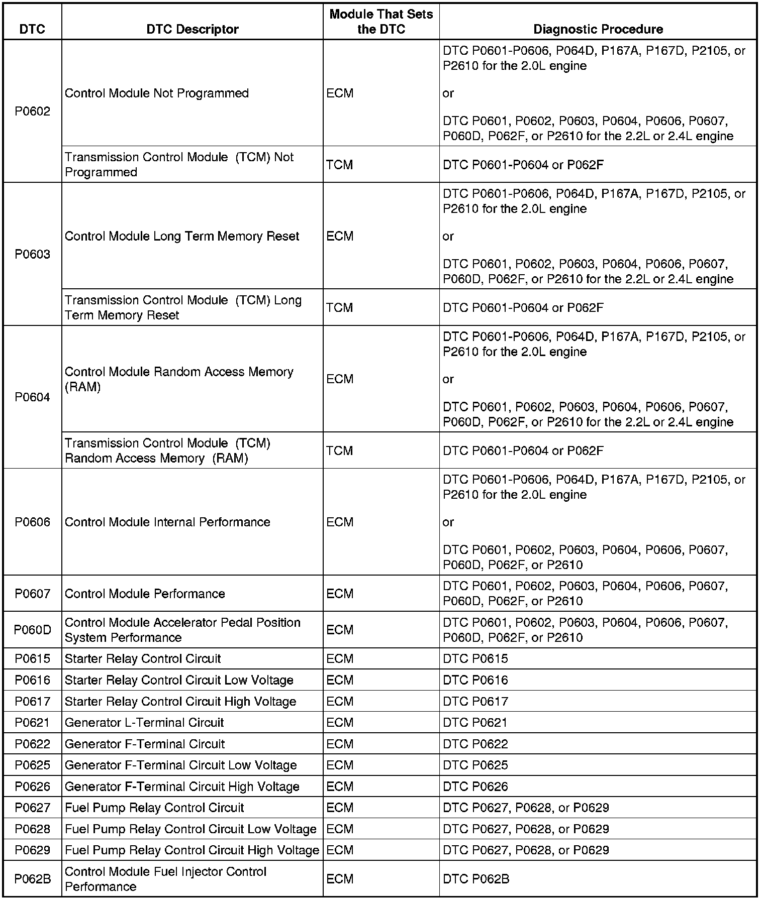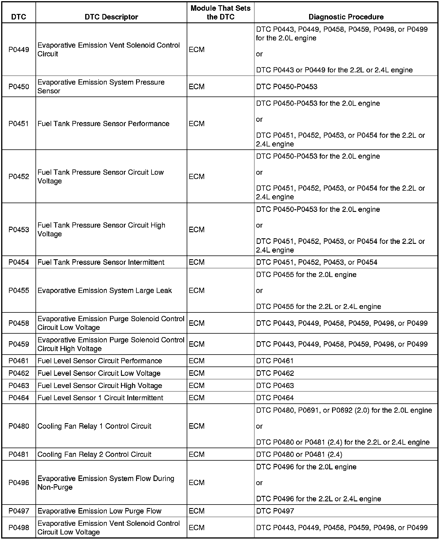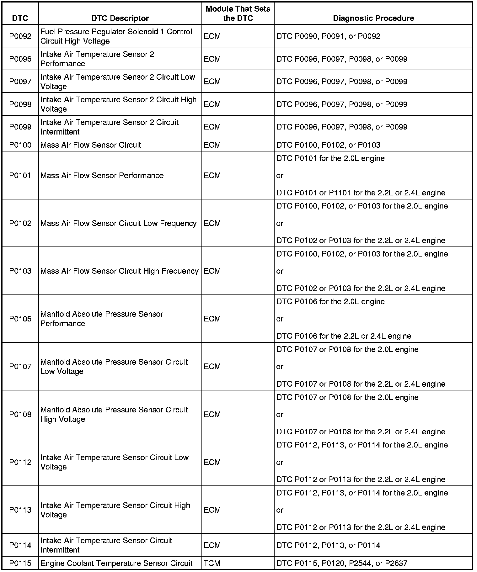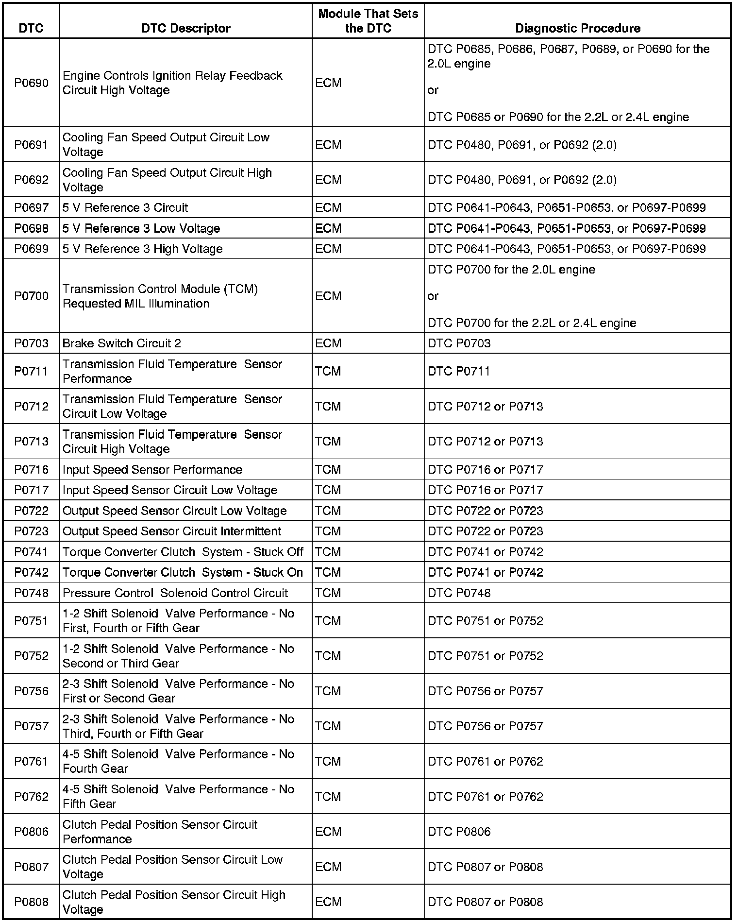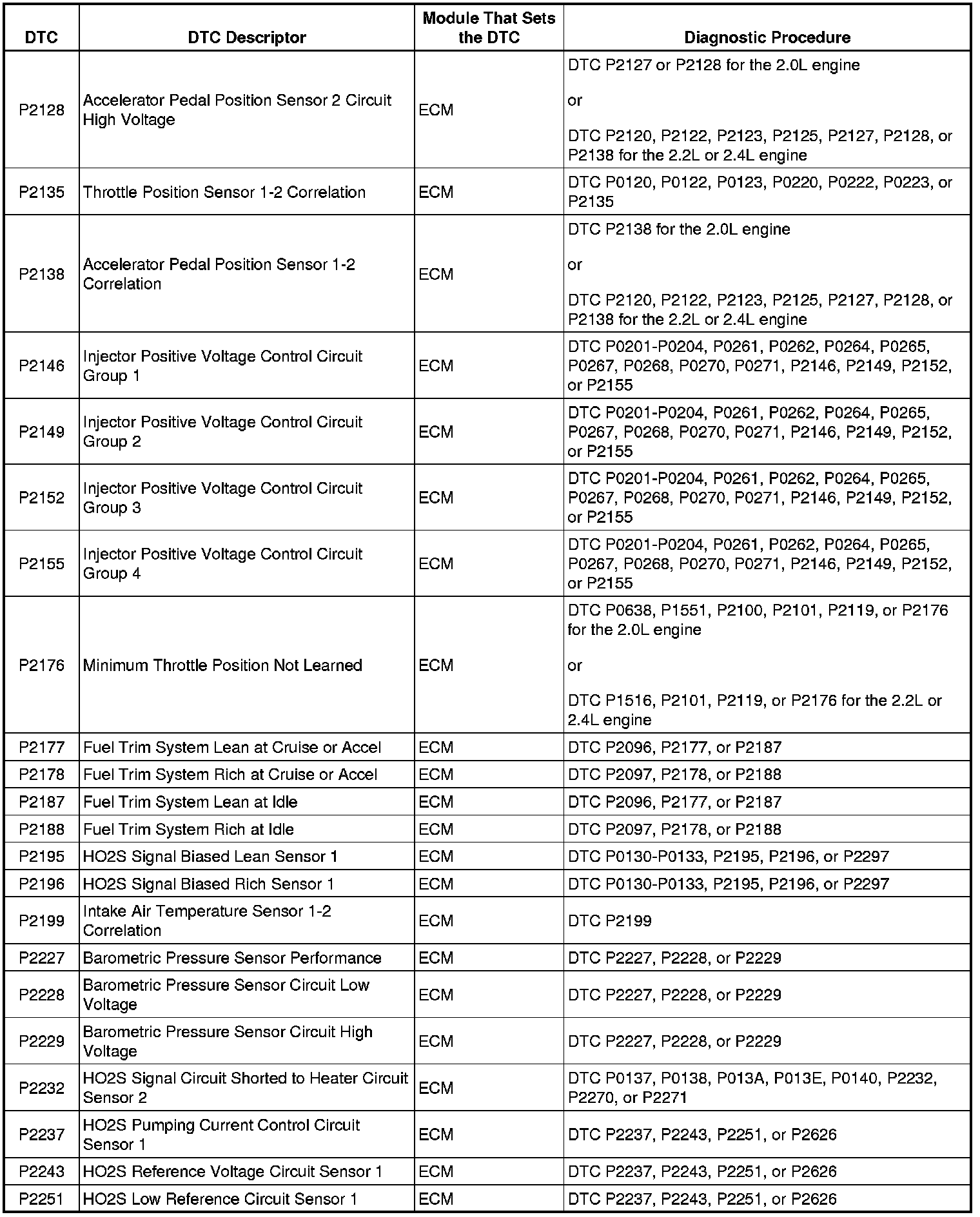 Diagnostic Trouble Code (DTC) List - VehicleThis master DTC list includes all applicable DTCs in alphanumeric order with descriptors.