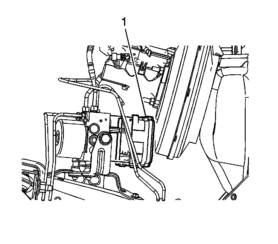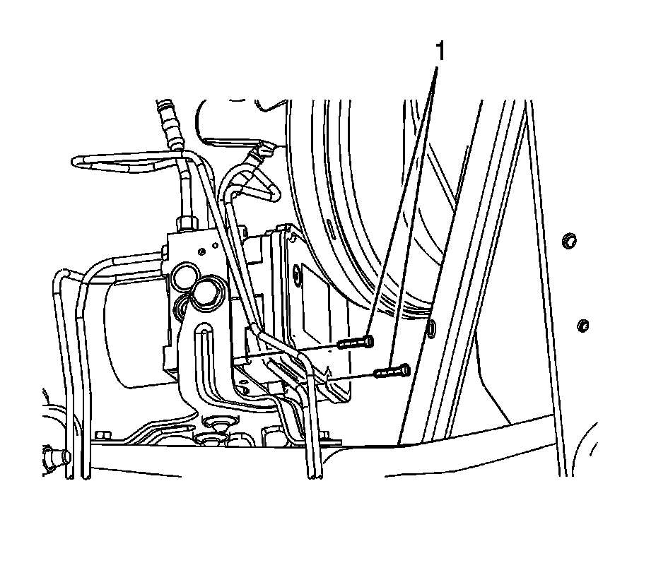 3. Install the 2 lower EBCM bolts (1) and tighten to 2.3 Nm (20 lb in).