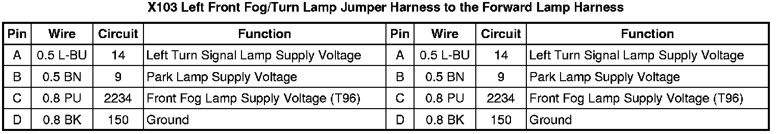 X103 Left Front Fog/Turn Lamp Jumper Harness to the Forward Lamp Harness