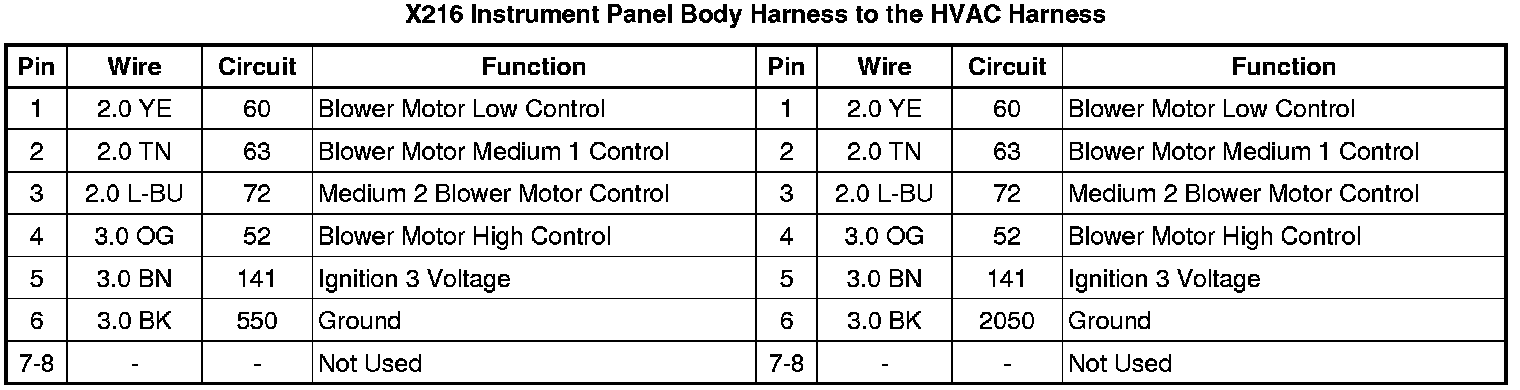 X216 Instrument Panel Body Harness to the HVAC Harness
