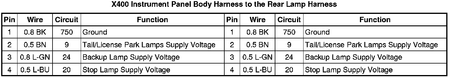 X400 Instrument Panel Body Harness to the Rear Lamp Harness