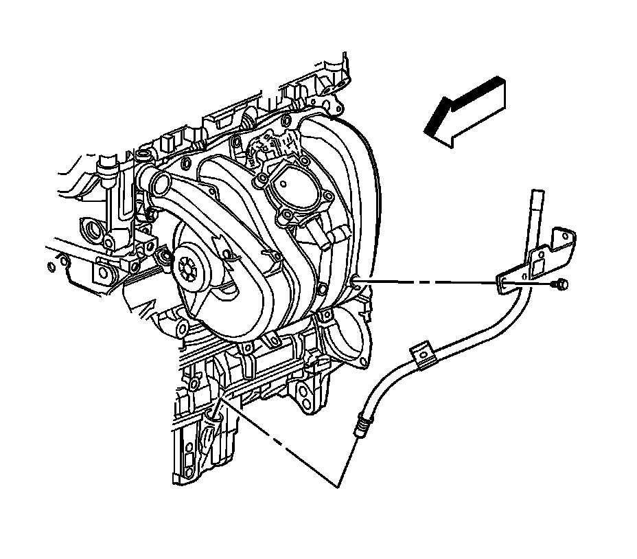 6. Remove the knock sensor clip from the oil level indicator tube.