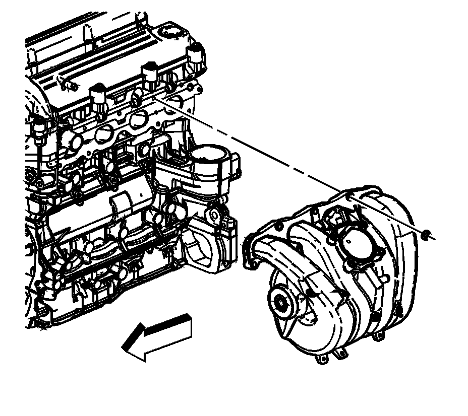 Note: Ensure that the rear metal tab of the EVAP emission canister valve is resting on the power steering pump metal body.