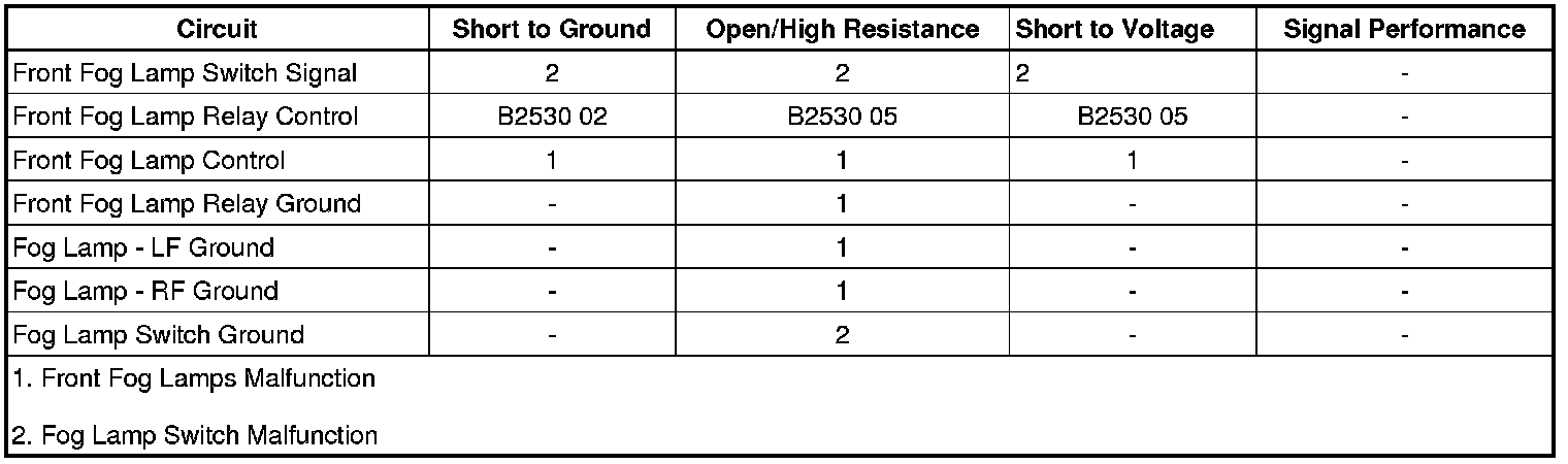 Front Fog Lamps Malfunction