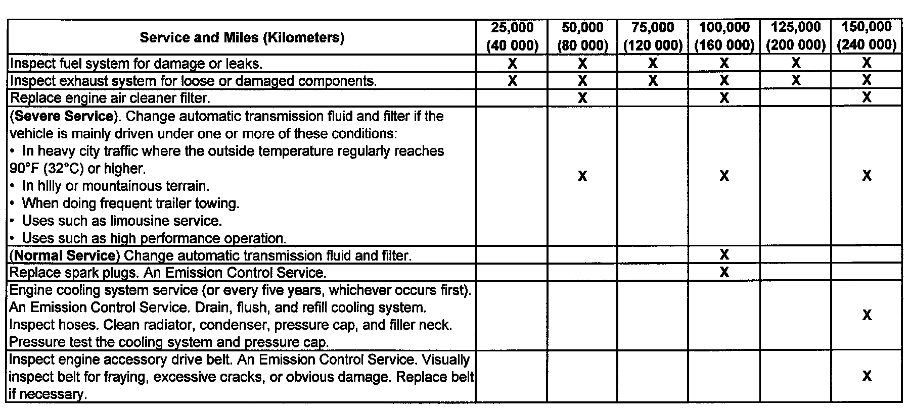 service (I or II) after the indicated miles (kilometers) shown for each item.