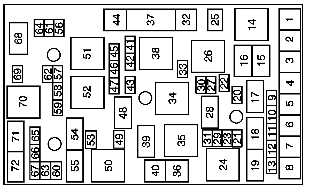 The underhood fuse block is located in the engine compartment on the passenger side of the vehicle.