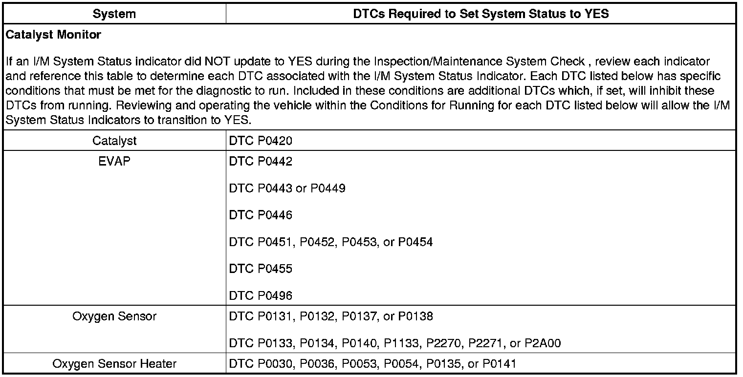 Inspection/Maintenance System DTC Table