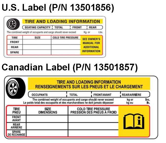 Effective June 2, 2008, the National Highway Traffic Safety Administration (NHTSA) requires all new vehicles with a 10,000 lb or less (passenger cars, light duty trucks and SUVs) gross vehicle weight rating (GVWR), that were manufactured after September 1, 2005 (2006 and newer model year vehicles), must be accurately reflected on the Vehicle Placard Label (Tire and Loading Information Label) tire size and pressures, cargo carrying capacity, and seating capacity.