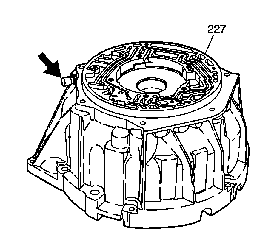 1. Inspect the transmission vent assembly for damage or being plugged. If the vent is damaged the torque converter housing (227) must be replaced.