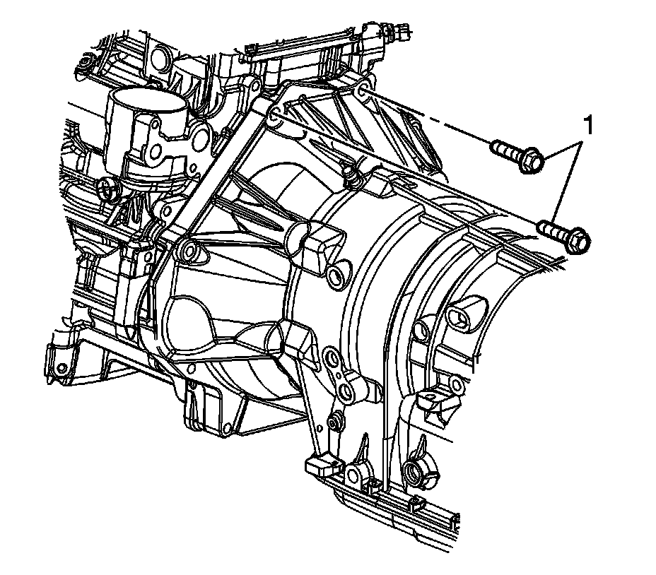 4. Install the left transmission mounting bolts (1) and tighten to 50 Nm (37 lb ft).
