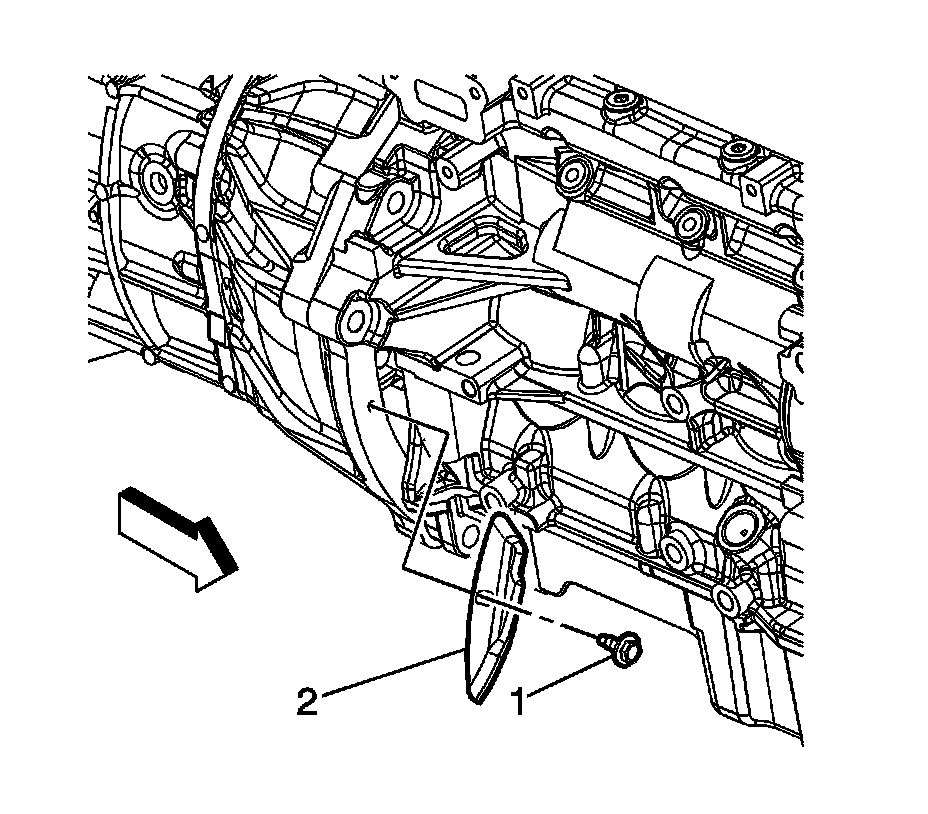 26. Install the left transmission mounting bolt (2) and tighten to 50 Nm (37 lb ft).