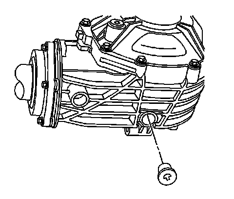 Note: If equipped with a limited slip differential, limited slip differential lubricant additive, GM P/N 1052358 (Canadian P/N 992694) or equivalent must be added first. Refer to Lubrication Specifications (Fluid Type Specifications). Approximately 0.23 L (7.8 oz) of residual fluid will remain in the differential.