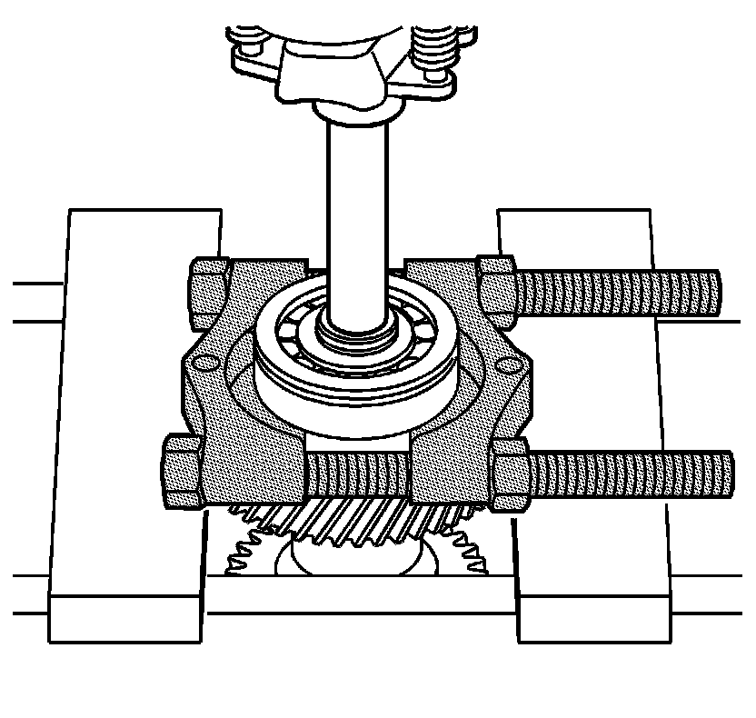 3. Using a hydraulic press and J 22912-B , remove the front bearing from the countershaft.