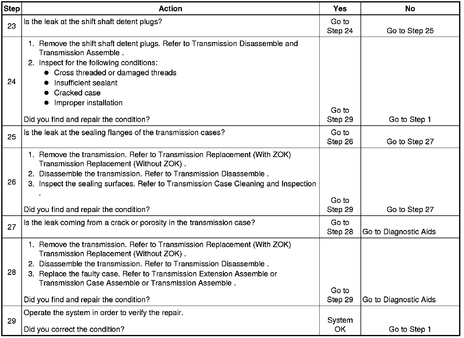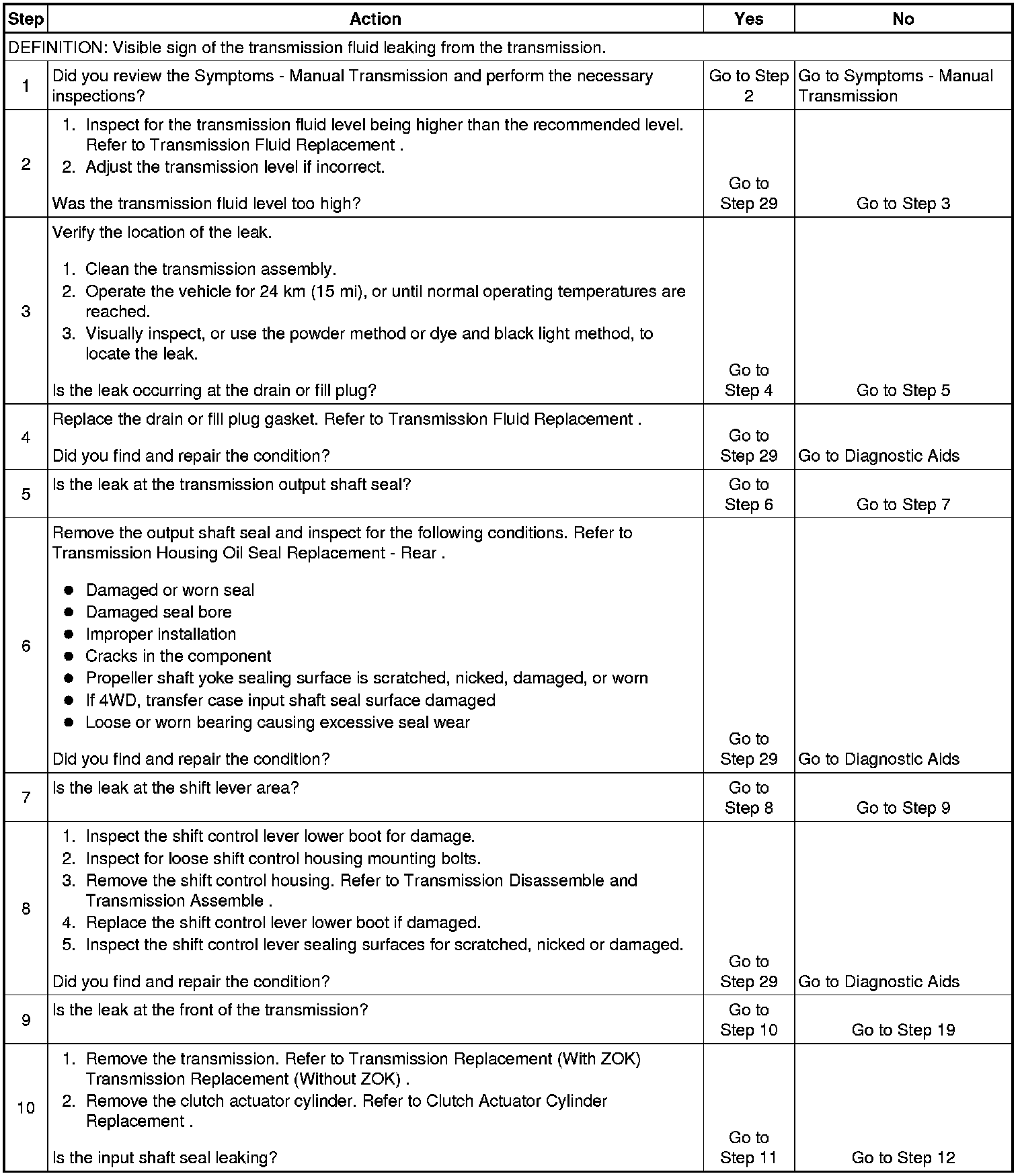 Using the incorrect type of transmission fluid may affect the sealing ability of the seals. Ensure the use of the correct type of transmission fluid. The incorrect type of sealer may not be compatible with the transmission fluid or may not have the correct characteristics for sealing the affected components. Ensure the use of the correct type of sealers. Refer to Adhesives, Fluids, Lubricants, and Sealers (Adhesives, Fluids, Lubricants, and Sealers).