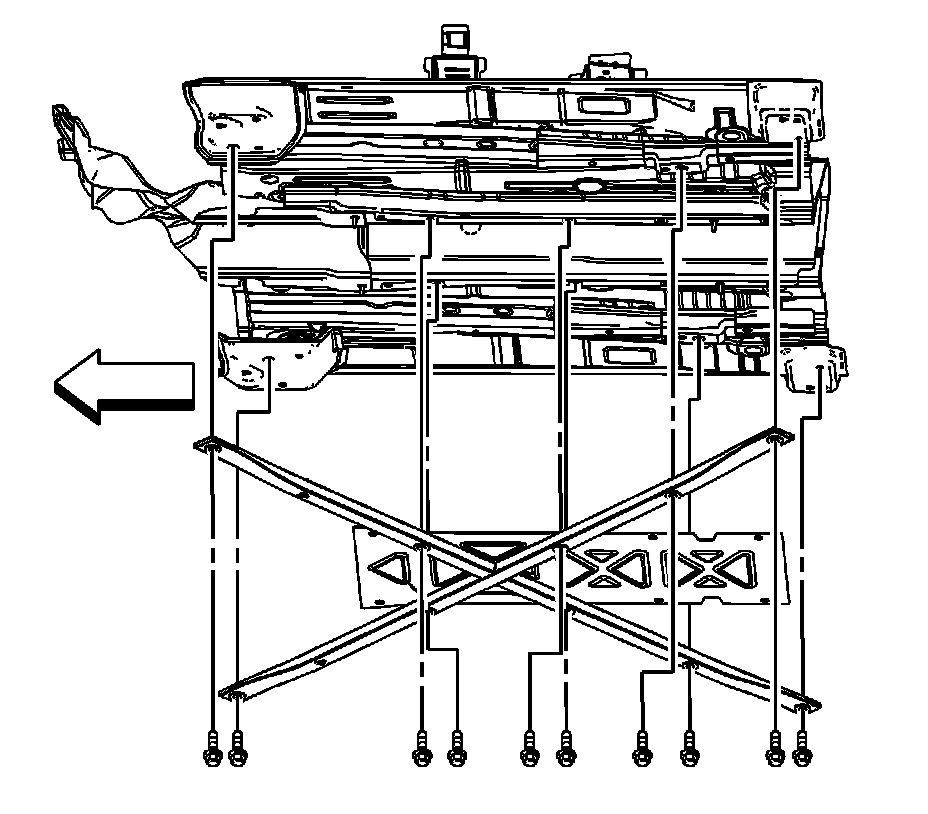 Note: In steps 2-9, use a transmission jack or the help of an assistant to remove the support brace, floor tunnel brace, and the rear crossmember brace from the vehicle.