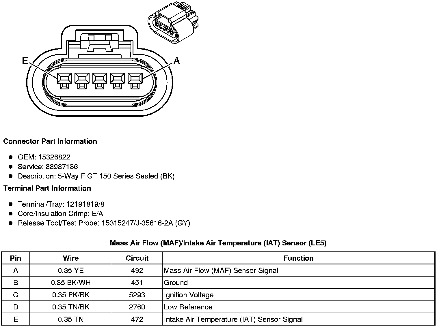 Mass Air Flow (MAF)/Intake Air Temperature (IAT) Sensor (LE5)