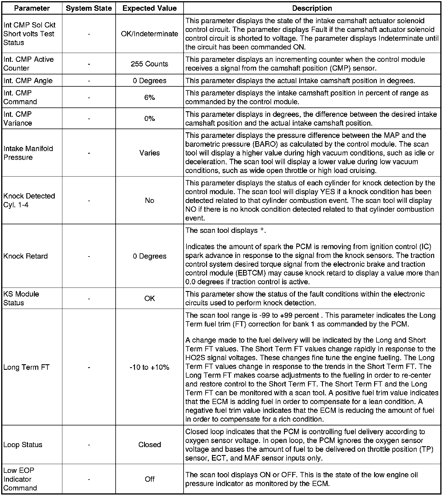 Only the parameters listed below are referenced in this service manual for use in diagnosis. If all values are within the typical range described below, refer to Symptoms - Engine Controls Symptoms - Engine Controls for the 2.4L engine for diagnosis.