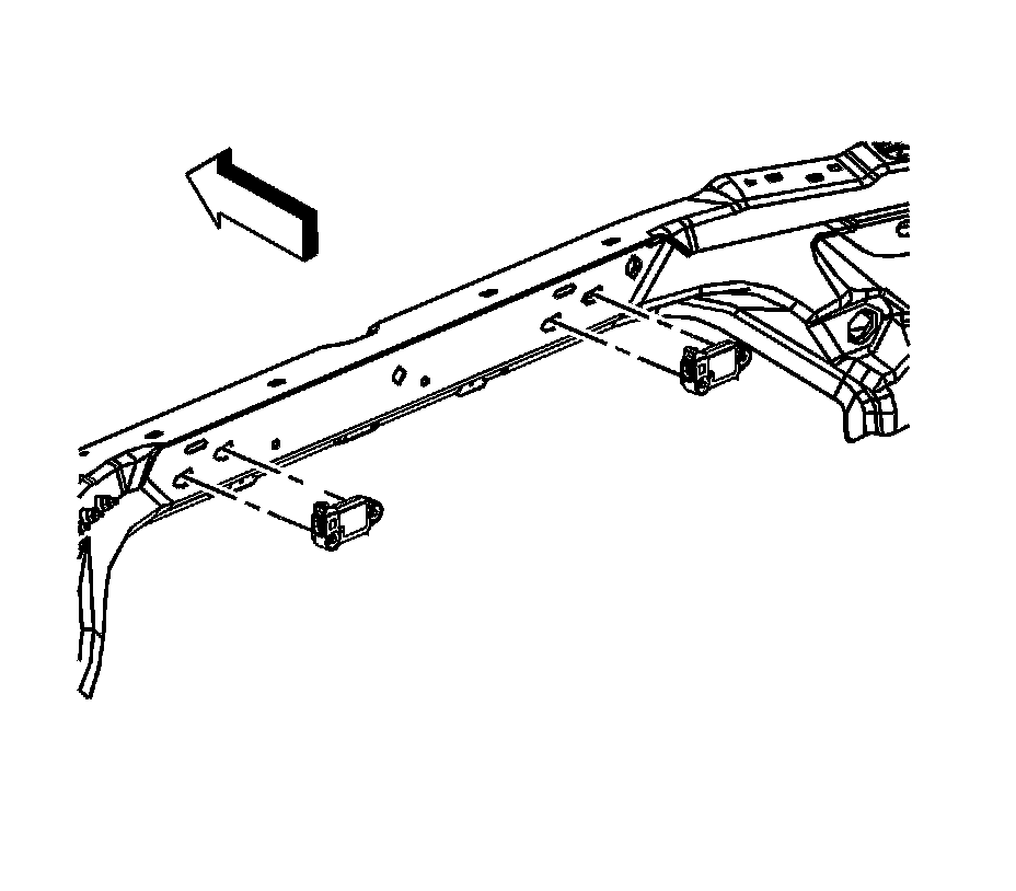 5. Remove the 2 integral bolts that retain the front end sensor to the frame front crossmember.