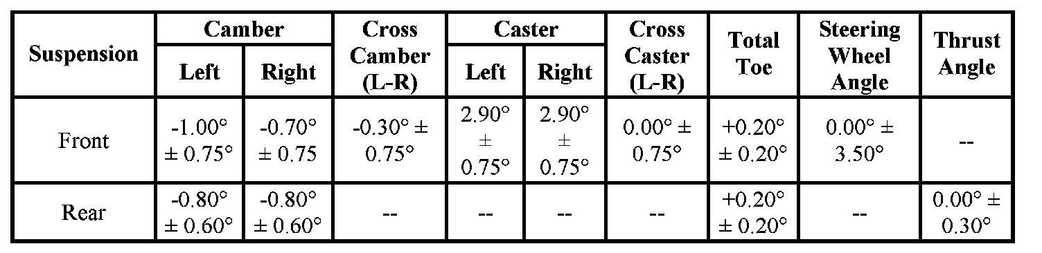 Wheel Alignment Specifications