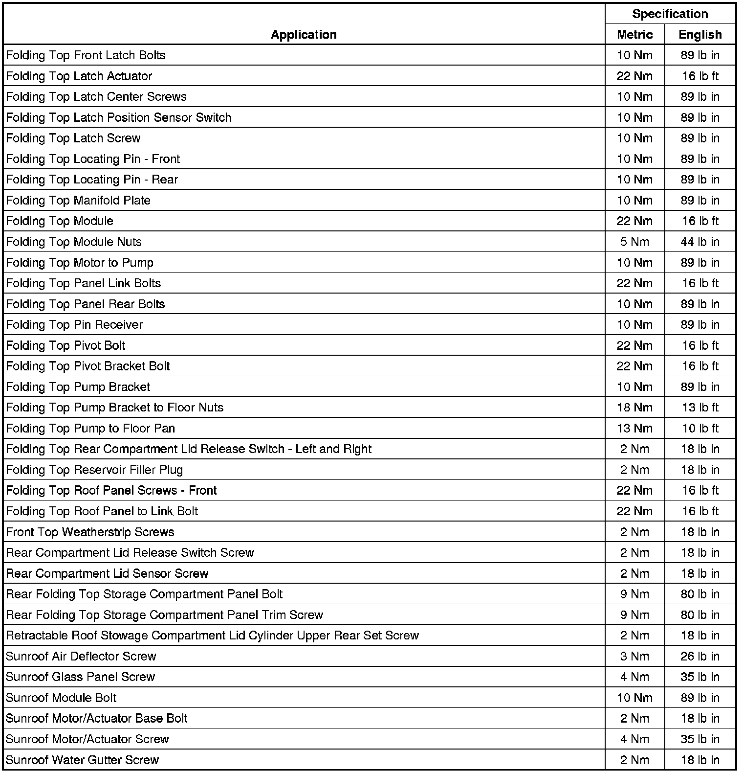 Fastener Tightening Specifications