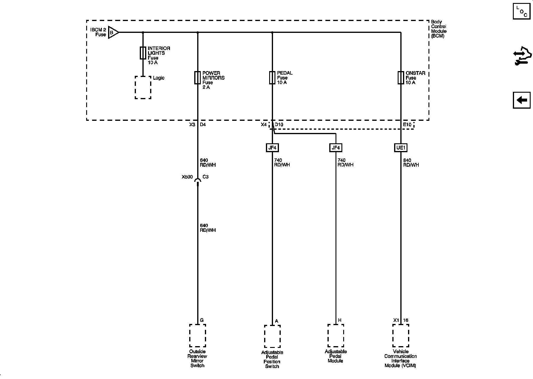 INTERIOR LIGHTS, ONSTAR(TM), PEDAL, and POWER MIRRORS Fuses