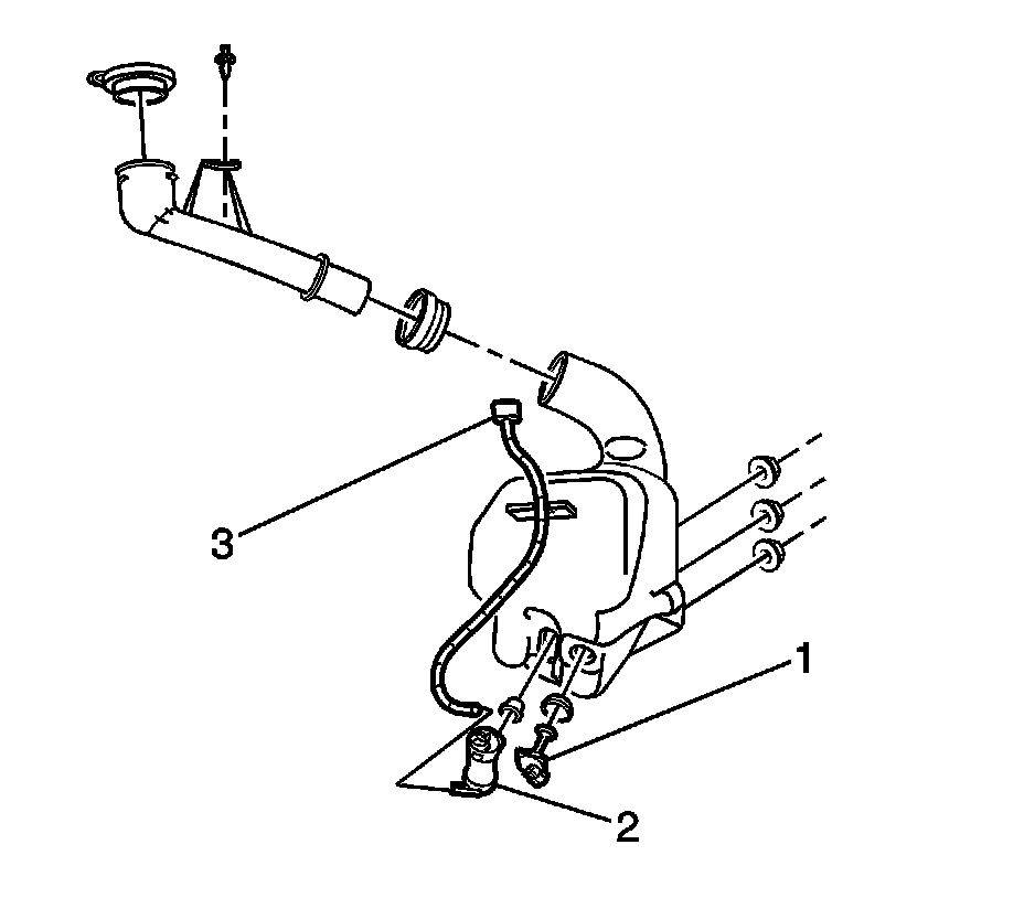 4. Connect the washer pump hose (3) to the washer pump (2).