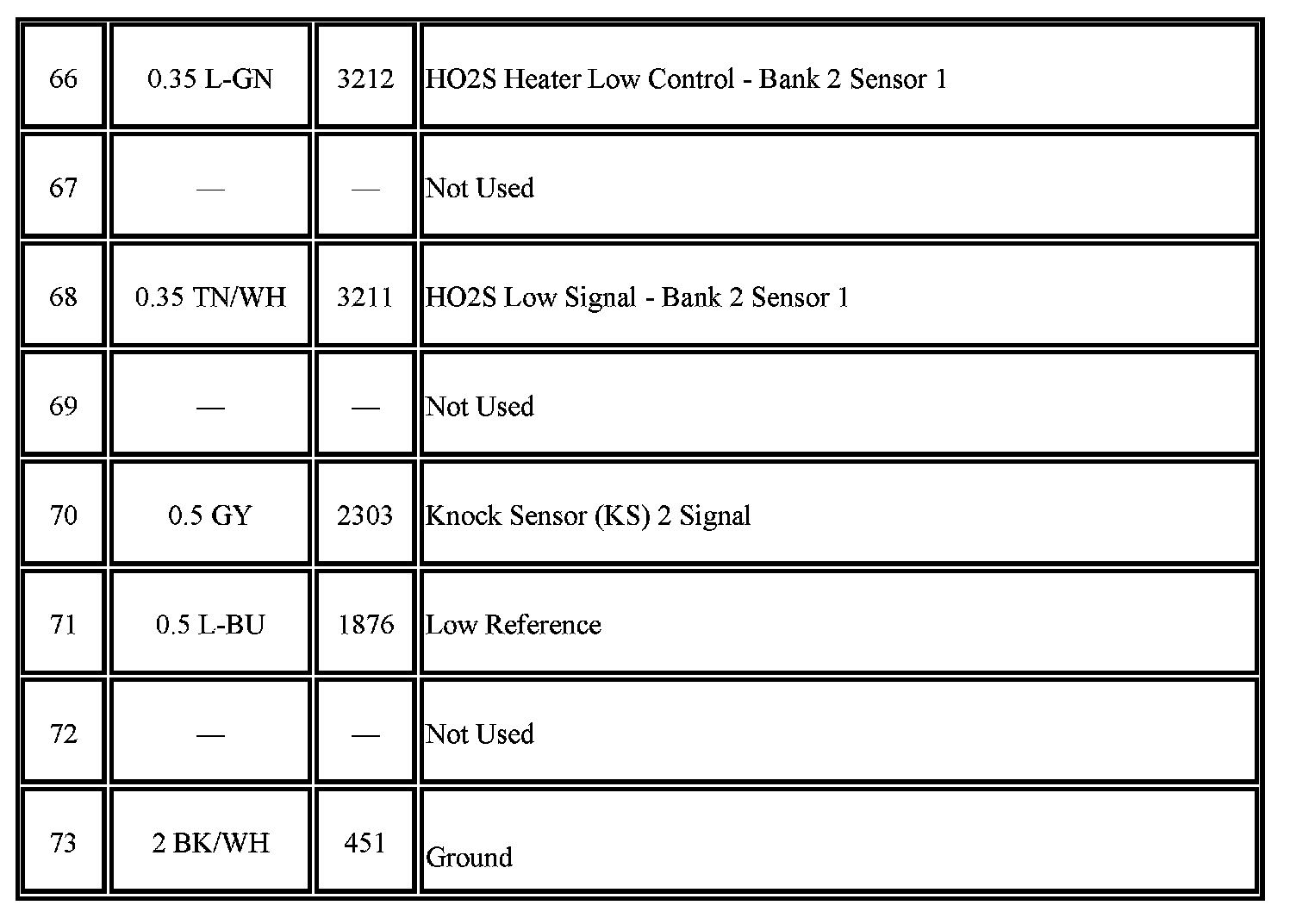 - Pins: 2-5, 9, 15, 19-20, 22-24, 30-31, 33, 35-38, 40-43, 45-46, 48, 53-60, 63-66, 68