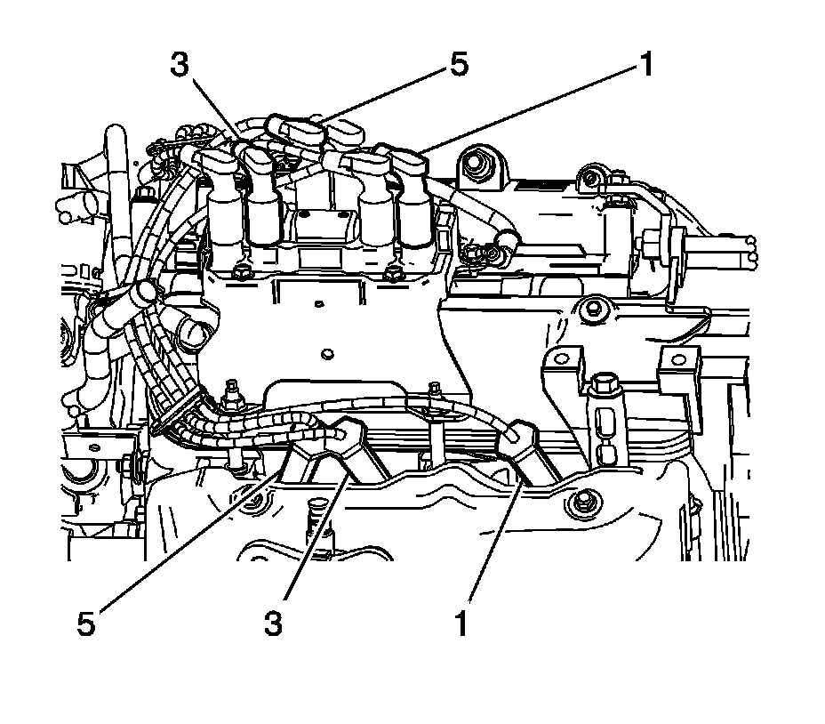 3. Install the spark plug wires (1, 3, and 5) to the engine right side spark plugs.
