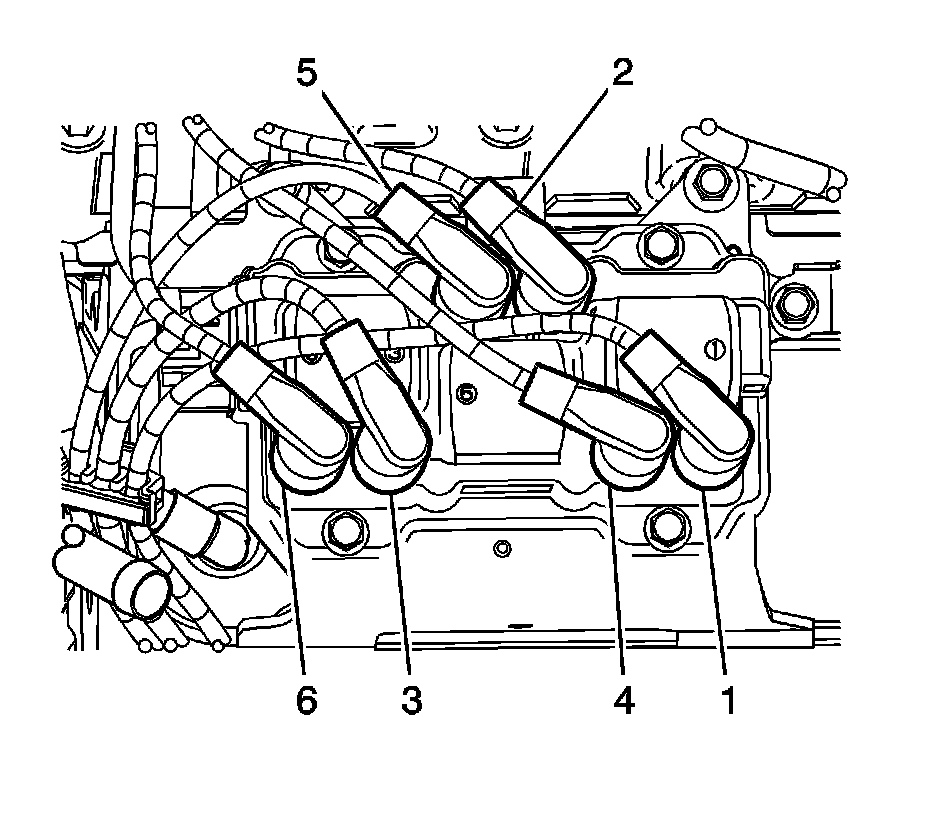 1. Install the spark plug wires (1-6) to the engine.