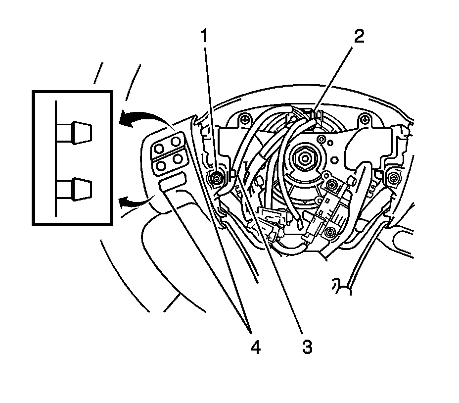 1. Engage the pins (4) and install the audio control switch to the steering wheel.