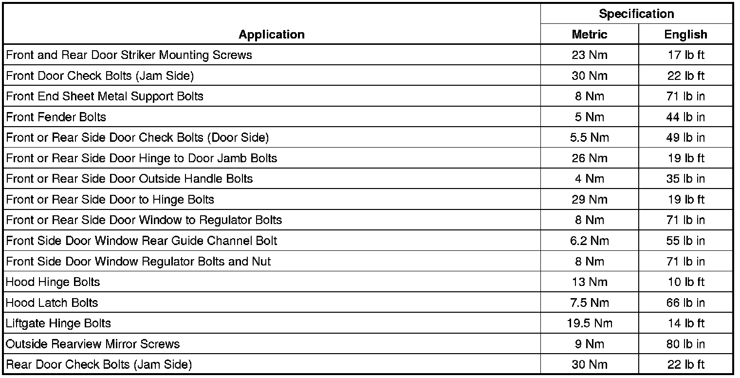 Fastener Tightening Specifications