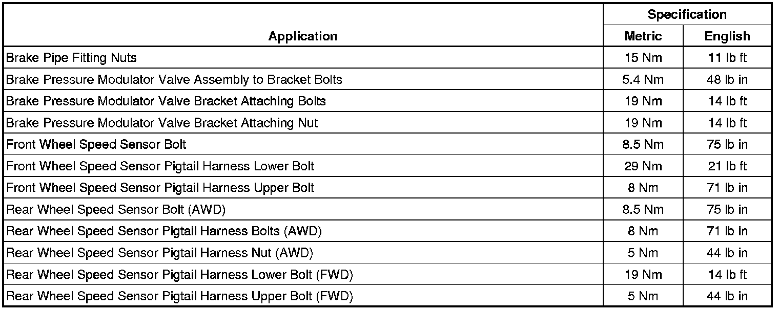 Antilock Brakes / Traction Control Systems: Specifications