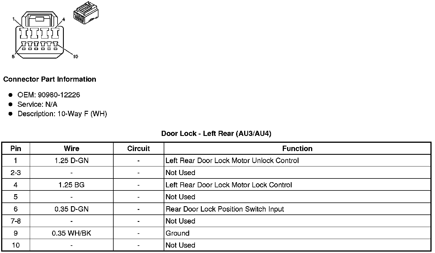 Door Lock - Left Rear (AU3/AU4)